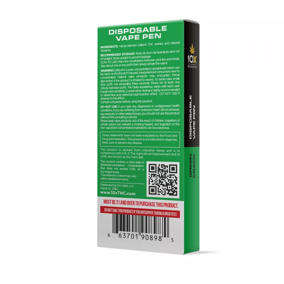 Green Crack Vape Pen – Delta 8 THC – Disposable – 10X – 920mg